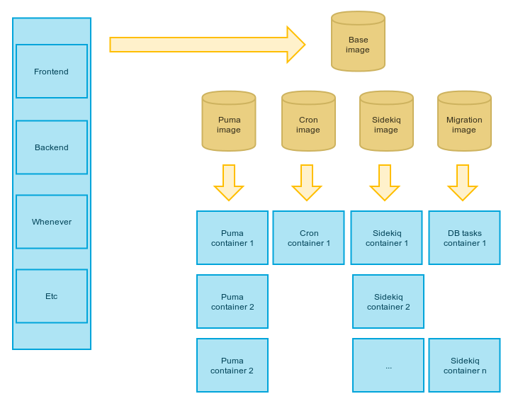 - Base image with system wide most used gems to speed up bundle install